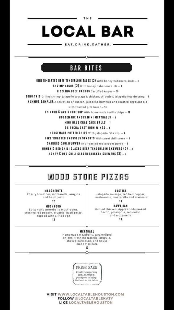 Local Table offers a delightful New American Breakfast & Brunch experience in Katy, TX. With a diverse menu that includes vegan and vegetarian options, this trendy and casual spot is perfect for any occasion. Their appetizers like Ahi Tuna Tartare and Blue Crab Cakes showcase the quality and creativity of the dishes. The burgers, such as the All-Natural Chicken Burger and the Veggie Burger, are flavorful and satisfying. Sandwich options like the Chicken Gyro Pita and the Chicken Salad on Croissant are packed with fresh ingredients. The relaxed atmosphere, combined with amenities like free Wi-Fi and outdoor seating, makes Local Table a great choice for families, groups, or a solo dining experience. Don't miss out on their happy hour specials and full bar offerings for a complete dining experience.